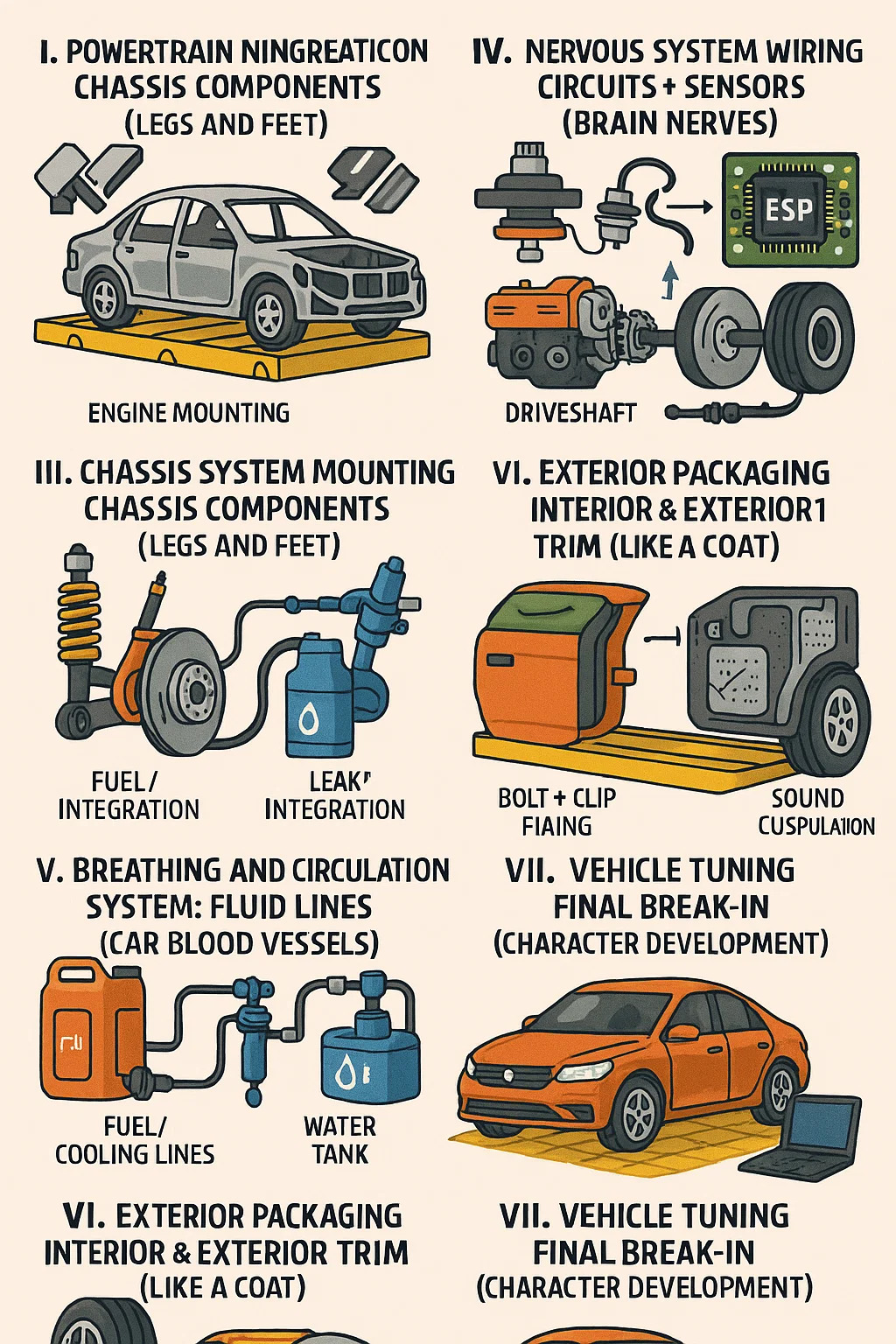Comhtháthú na chuid feithicleach cosúil le bloic thógála a chur le chéile, ciorcaid a nascadh, agus deochanna fuinnimh a chur leis. Tá comhpháirteanna éagsúla le chéile go beacht ar líne tionóil, ar deireadh thiar ina gcomhpháirtí cruach soghluaiste.