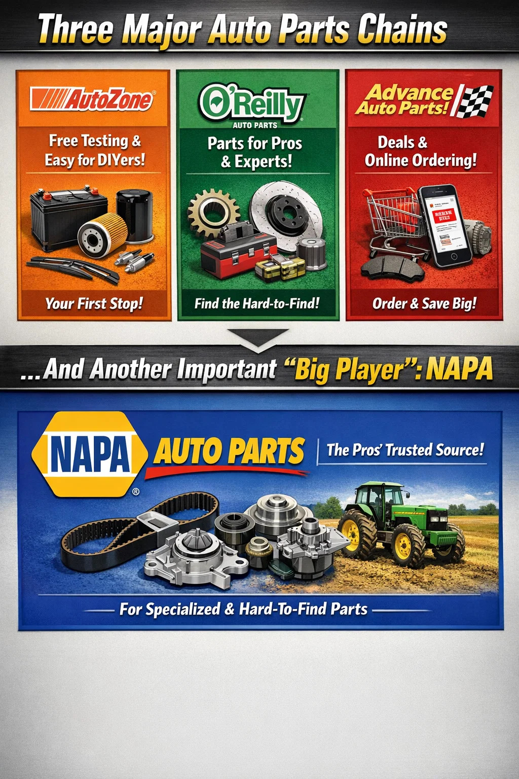 Má tá tú ag lorg áit a cheannach páirteanna uathoibríoch , go ginearálta tá trí fhathach aitheanta sa mhargadh. Cibé an bhfuil tú díograiseach DIY ag obair ar do charr féin nó meicneoir gairmiúil ag lorg páirteanna speisialaithe, clúdaíonn na trí stór beagnach gach cuid de charr ar féidir leat smaoineamh ar.